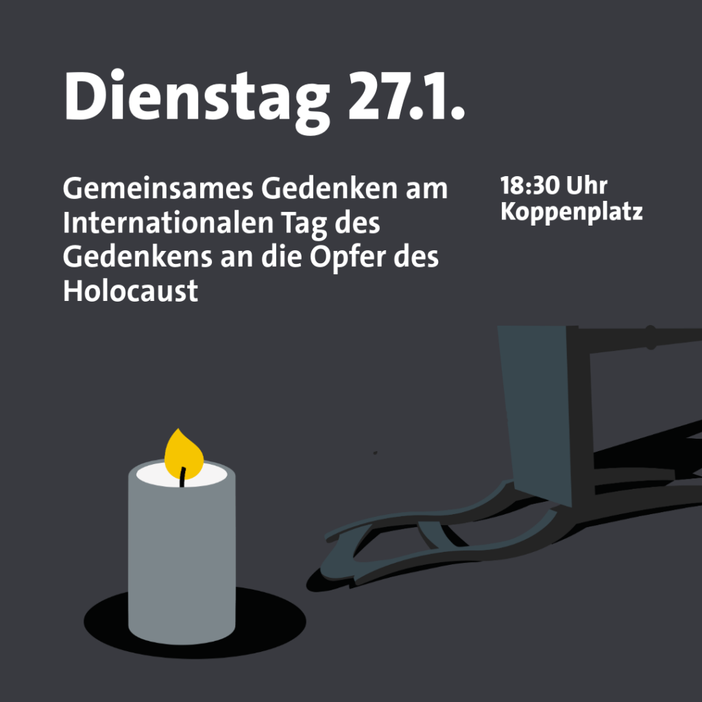 Komm auf den Koppenplatz zum Internationalen Holocaust-Gedenktag.